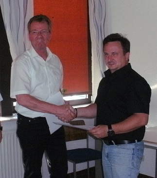 Ortsbürgermeister Paul Sefrin übergibt Achim Scherer die Ernennungsurkunde und gratuliert dem neuen zweiten Beigeordneten und freut sich auf die neue gemeinsame Zusammenarbeit, die es so erstmals in der Geschichte von Bechhofen gibt. Achim Scherer wurde einstimmig gewählt.