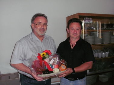 Fraktionsvorsitzender Dieter Stephan überbringt die Glückwünsche für die SPD Fraktion und überreicht einen Präsentkorb.